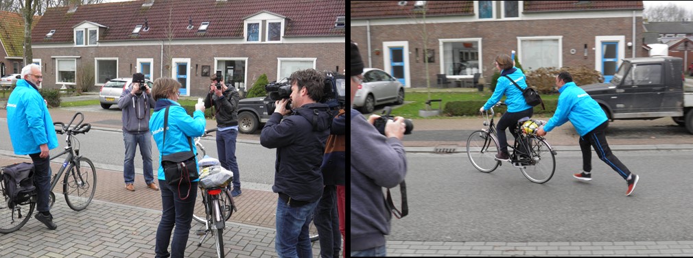 maandag 06 maart 2017 13:55 Op maandag 6 maart hebben Heleen Kroondijk en Olfert Molenhuis namens de ChristenUnie Assen in Hooghalen het estafettestokje overgedragen aan Catrien Venema van de ChristenUnie Midden-Drenthe. Catrien heeft het eerste deel van de Regiorace door Midden-Drenthe voor haar rekening genomen door vanaf Hooghalen naar Beilen te fietsen. In Beilen werd Catrien opgewacht door de hardlopers Arjan Feddes en Rudie Delamore. Na een enorme krachtsinspanning zijn Arjan en Rudie in Spier afgelost door Hugo Waalewijn. Uiteindelijk hebben zij met z'n drieën het stokje in Pesse overgedragen aan de gemeente Hoogeveen.